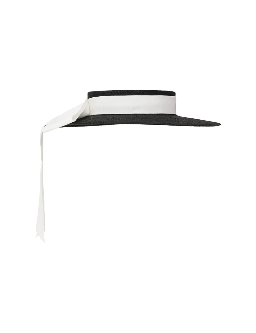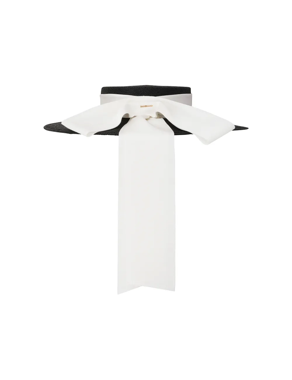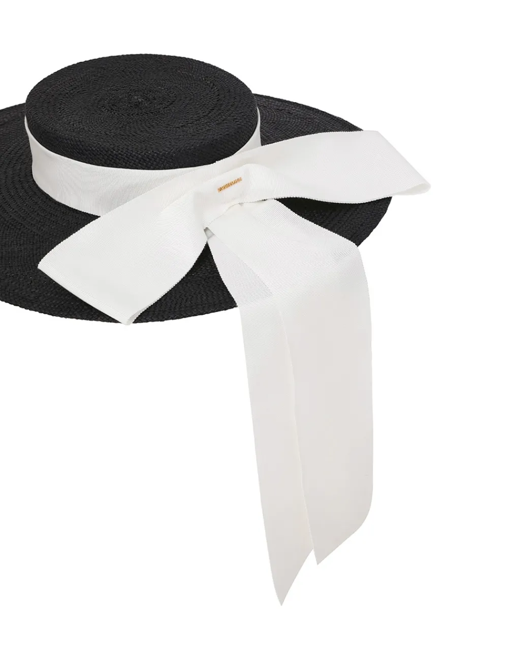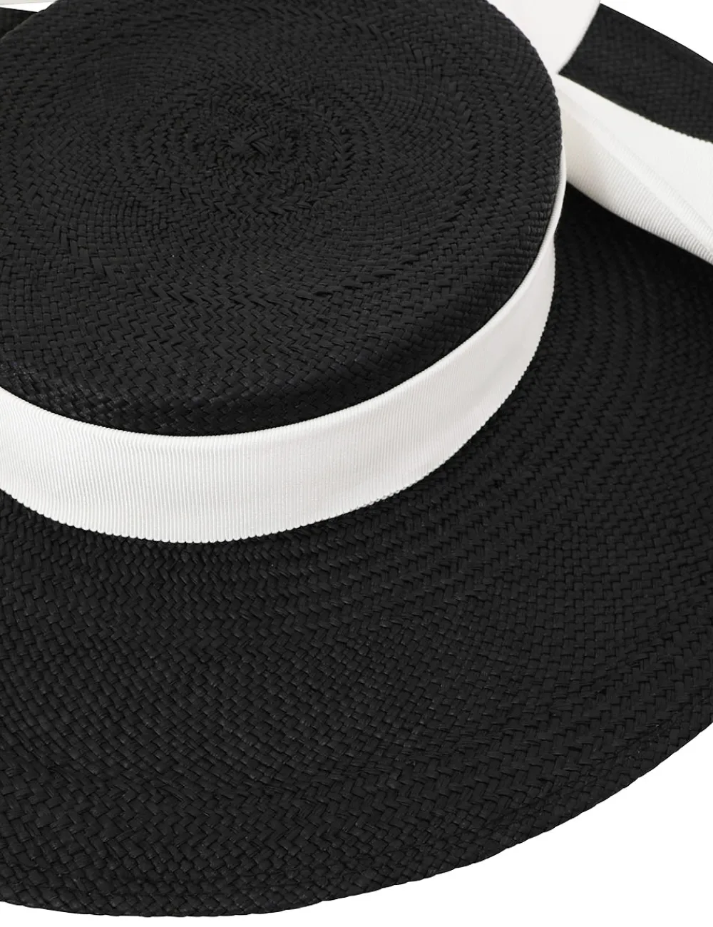 The Straw Boater In Black From Our Resort 2024 Collection, Matchmaker. A Wide Brim Straw Hat Featuring A Contrast Tie Around The Crown.