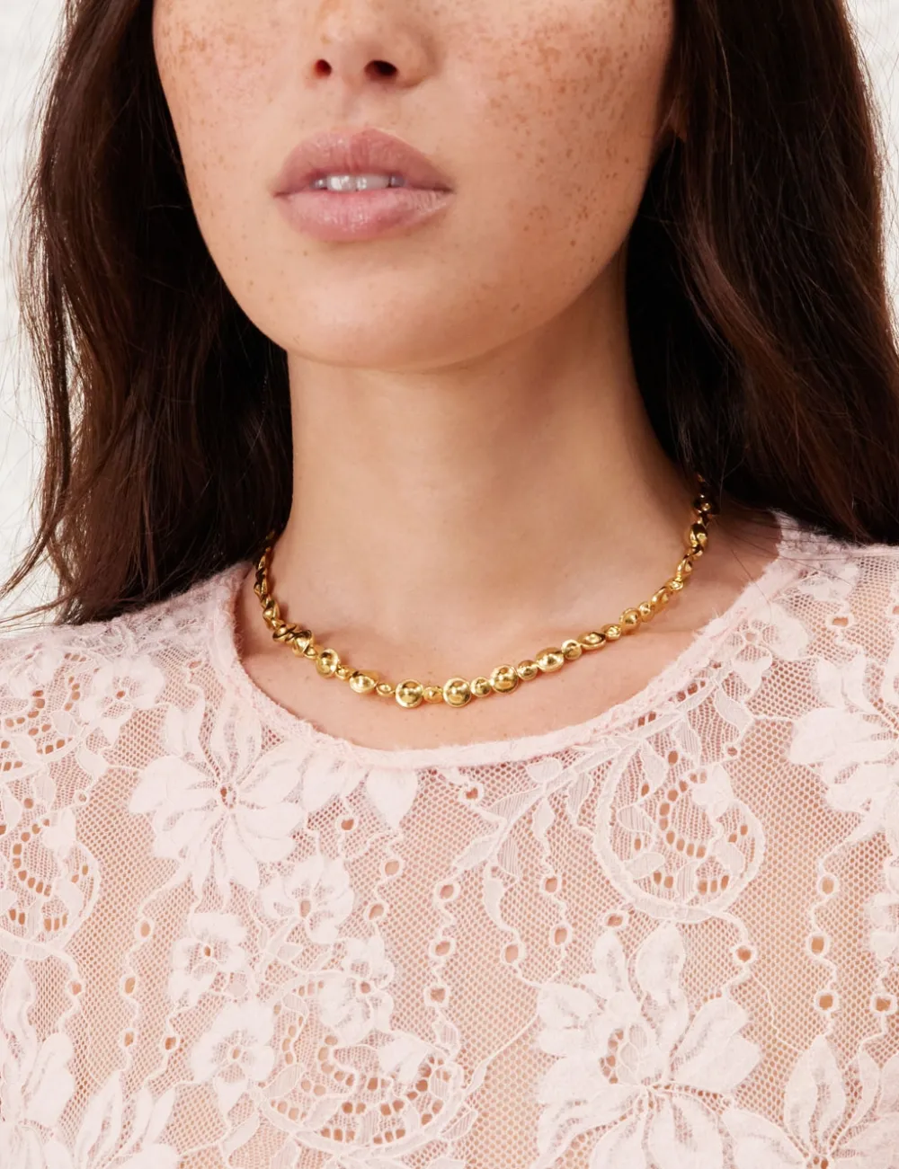 The Zimmermann Swing Necklace In Gold From Our Resort 2024 Collection, Matchmaker. A Gold Plated Necklace Featuring Sphere Beads Throughout.