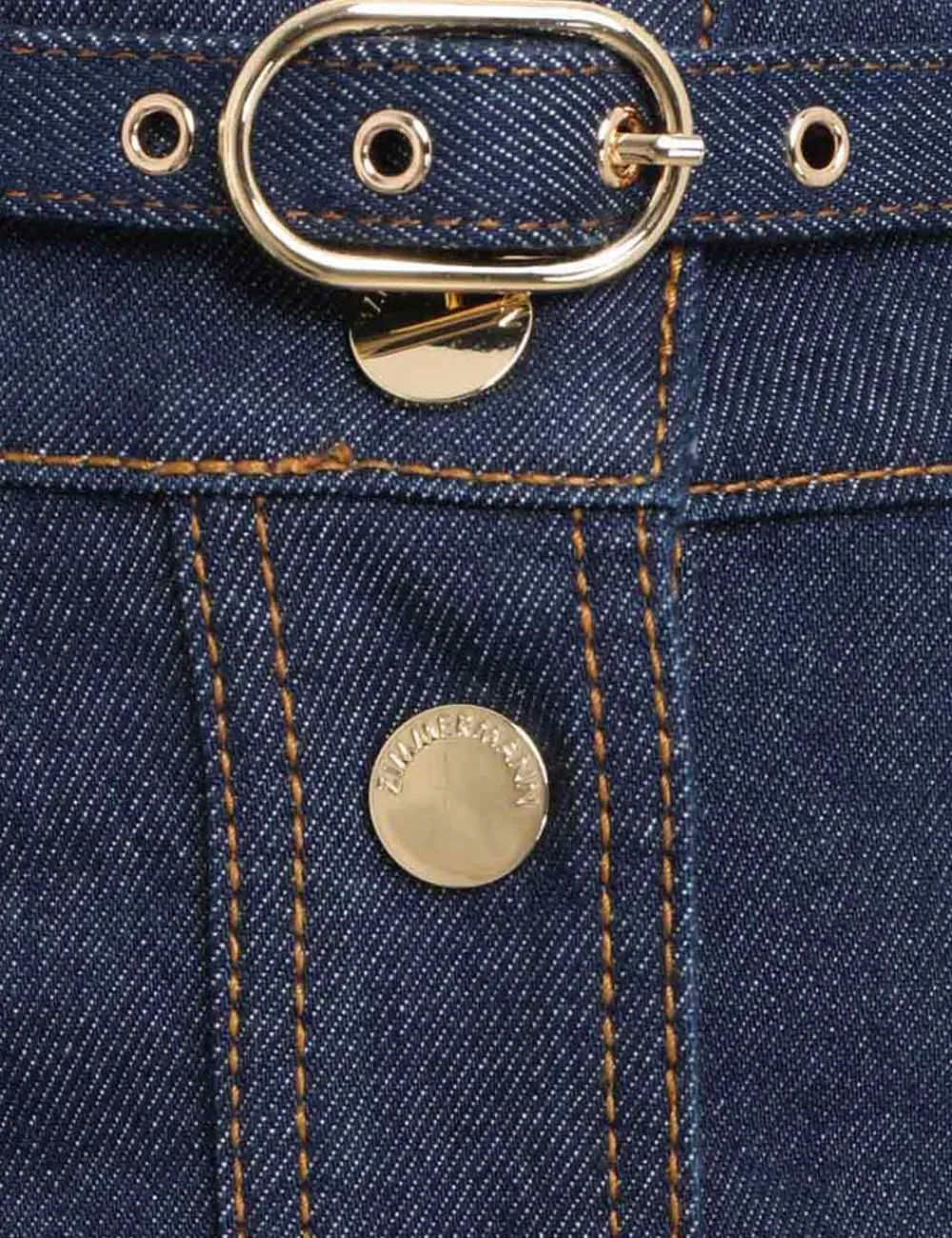 The A Line Denim Skirt In Ink From Our Fall 2023 Collection, Luminosity. A Denim Midi Skirt Featuring Welt Pockets And Buttons Down The Centre Front.