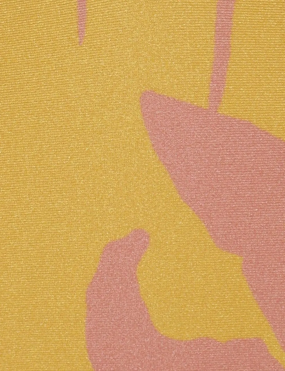 The Acadian Ruched Side Bikini In Coral/Mango Floralfrom Our Resort Swim 2024 Collection. A Halter Neck Bandeau Top And V Shaped Pant With Adjustable Ruched Details Throughout.