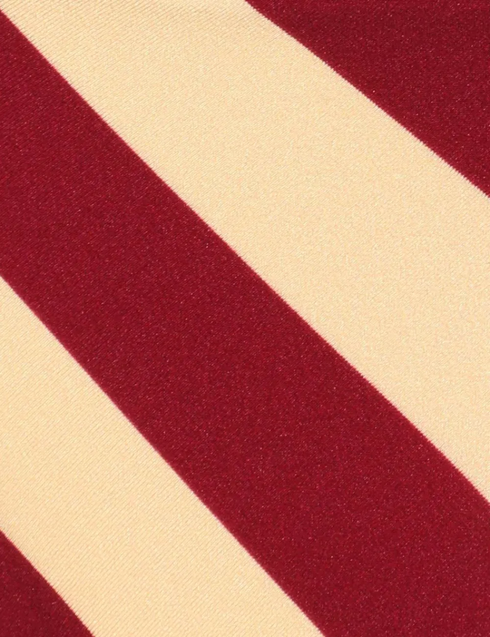 The Alight Rope Trim Mini Tri In Ruby/Cream Stripe From Our Resort Swim 2024 Collection. An Italian Lycra Bikini Set Featuring A Triangle Top And Low Cut Pant With Self Tie Rope Straps.