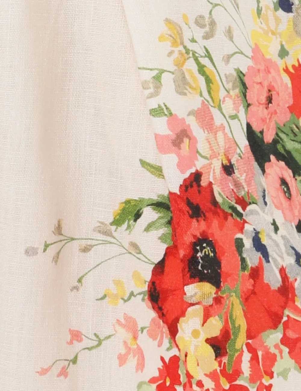 The Alight Tuck Short In Ivory Floral From Our Resort Swim 2024 Collection. A High Waisted Linen Short Featuring Placement Artwork And A Removable Wide Fabric Belt.