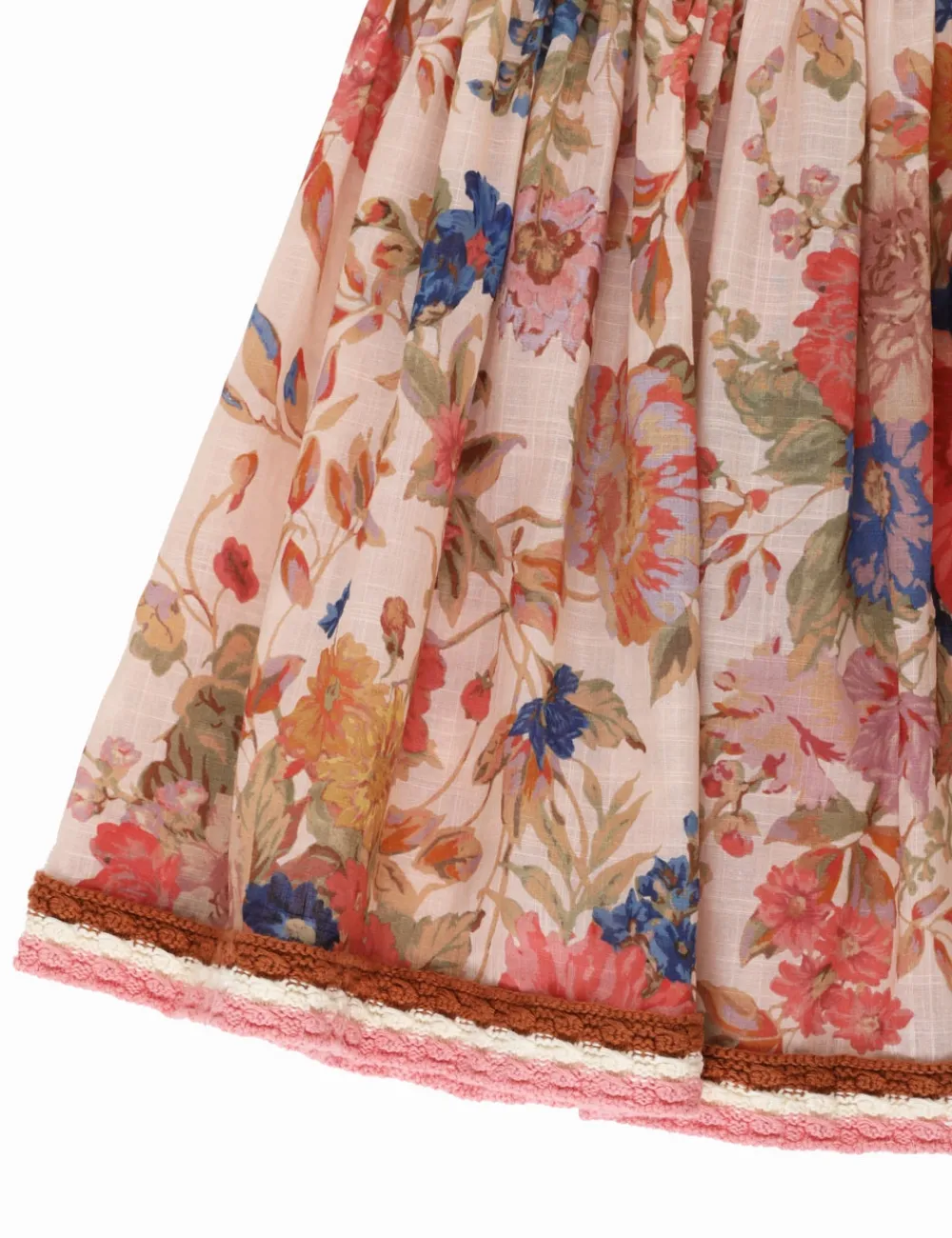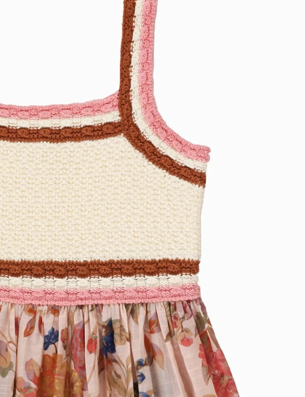 The August Knit Top Woven Dress In Multi From Our Resort Swim 2024 Collection. A Kids Dress With A Knitted Bodice.
