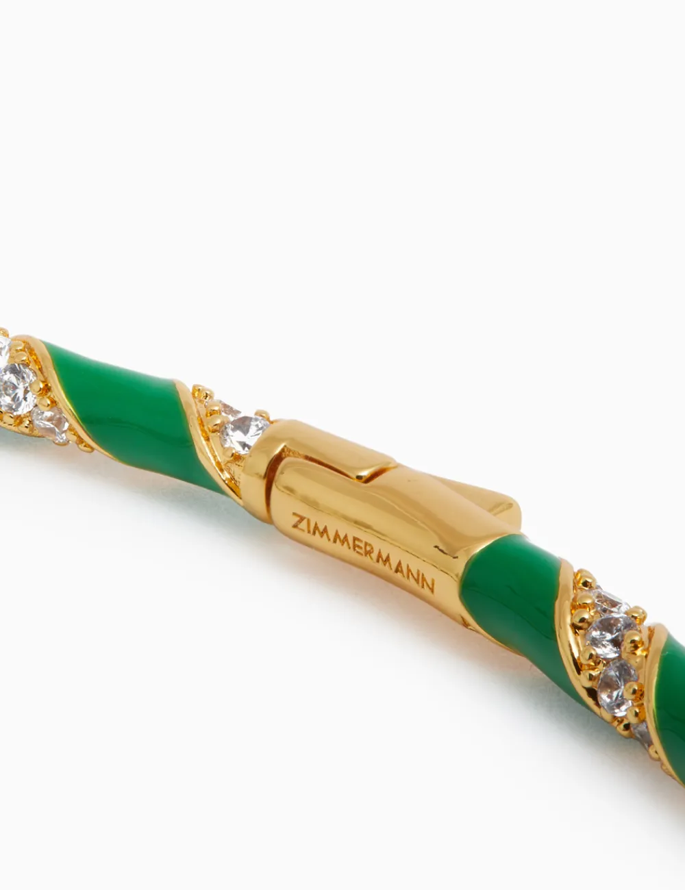 The Candy Stripe Pave Choker In Gold/Green From Our Spring 2023 Collection, Wonderland. A Gold Plated Choker Featuring Cubic Zirconia Stones Throughout.