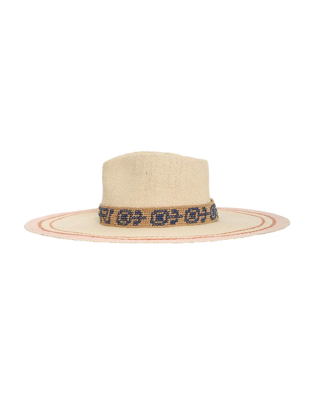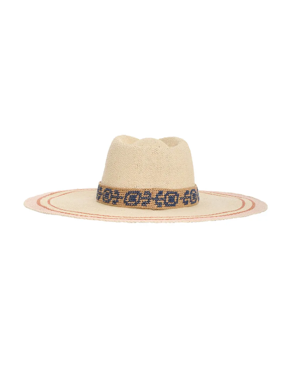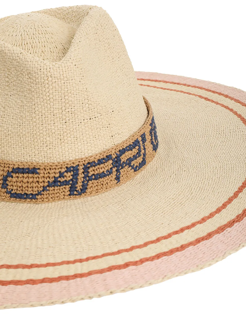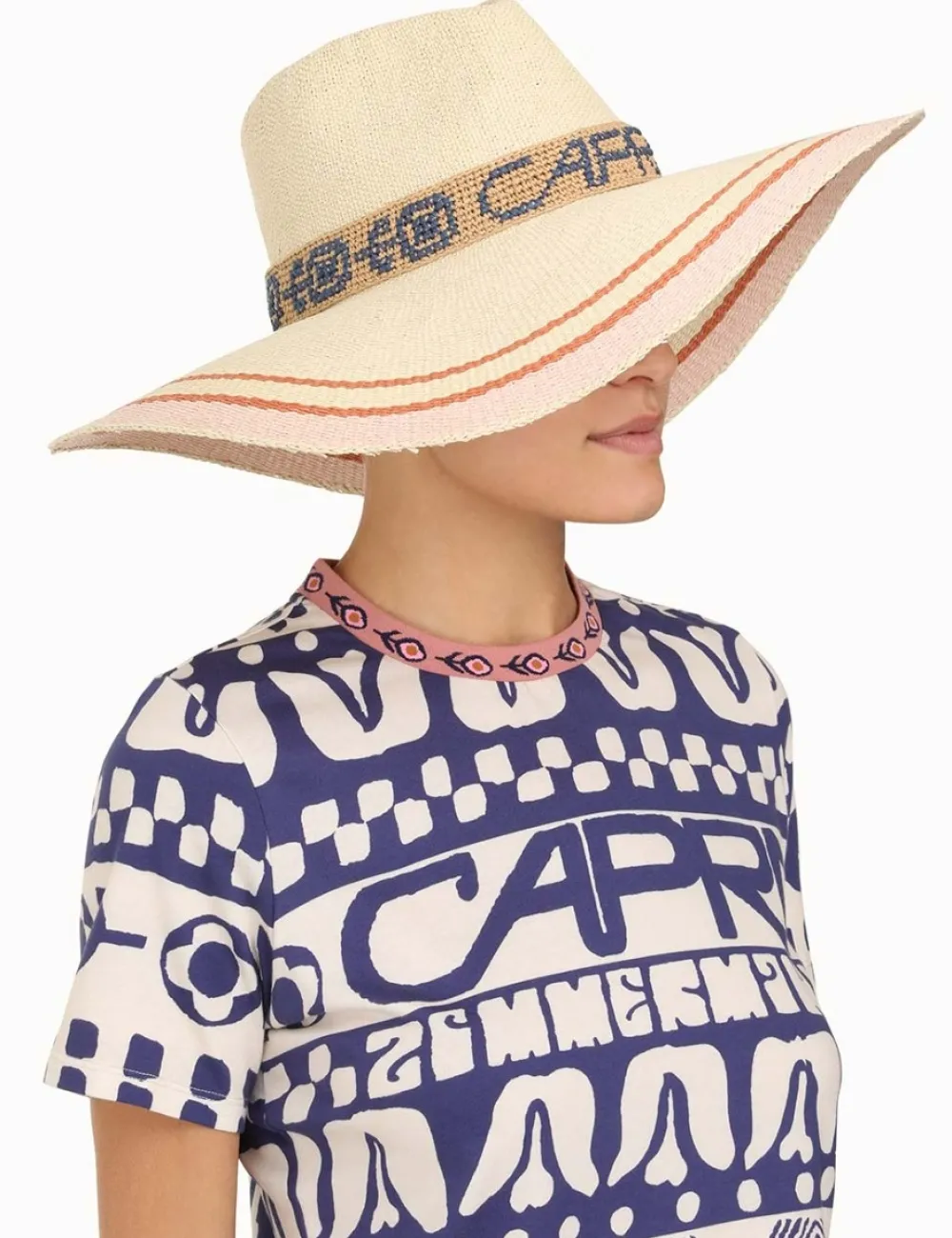 The Contrast Stripe Hat In Capri From Our Holiday 2023 Edit. A Wide Brim Hat Featuring Contrast Edges Throughout.