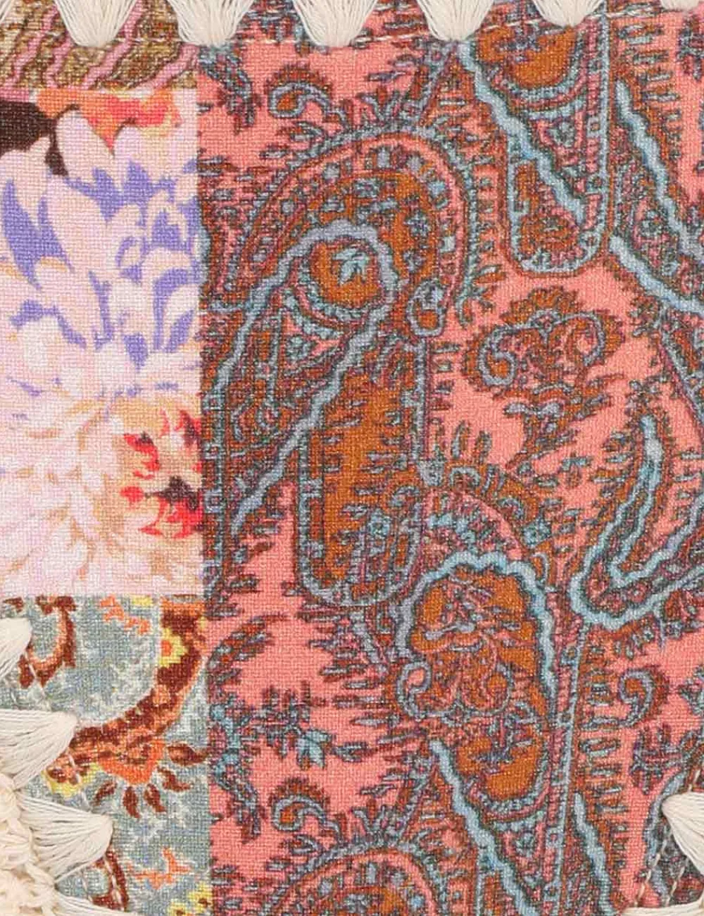 The Devi Crochet Edge Bikini In Patch Paisley From Our Summer Swim 2023 Collection. An Italian Lycra Bikini Set Featuring Crochet Edging And Self Tie Straps With Toggle Ends.