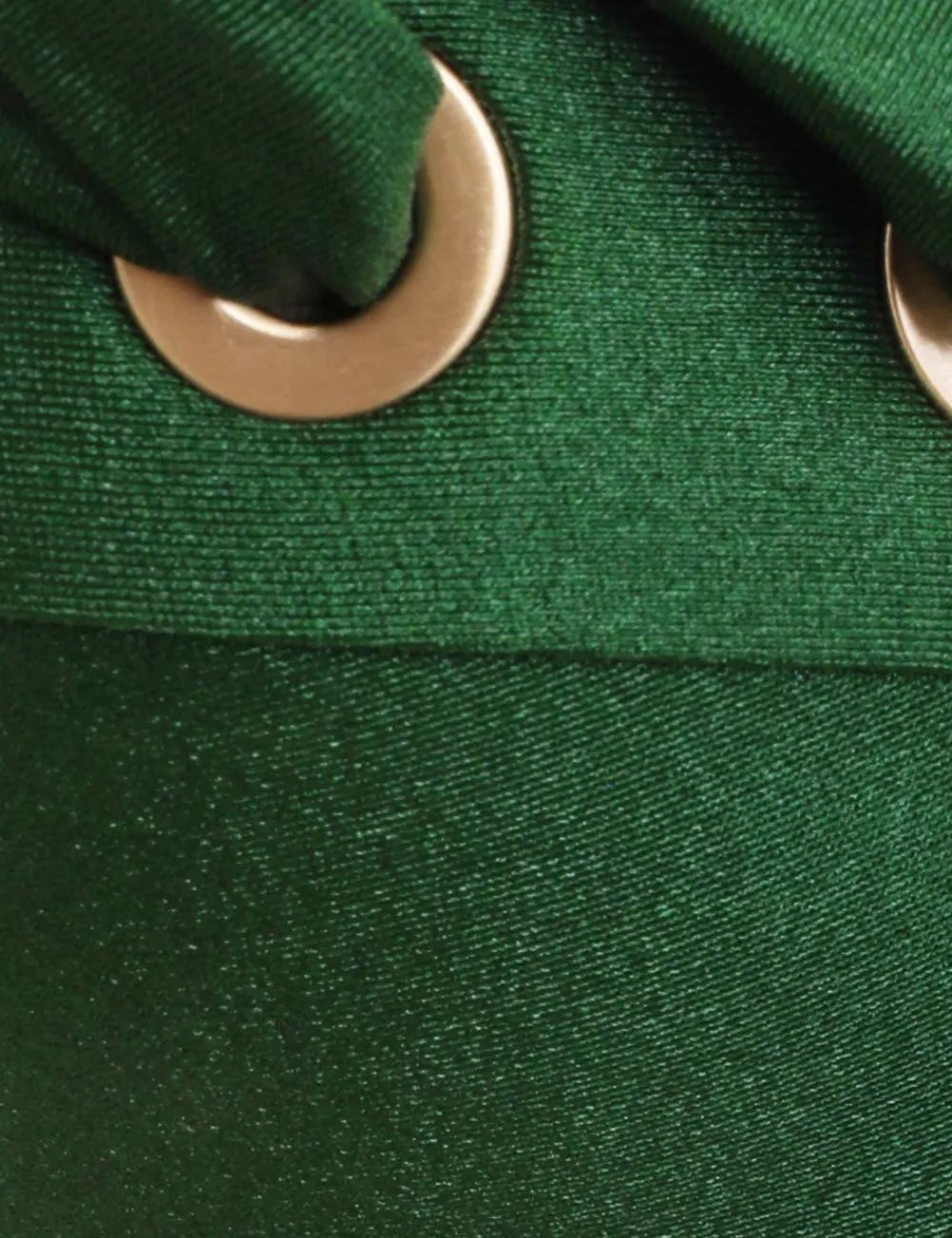 The Devi Eyelet Balconette Bra In Emerald From Our Summer Swim 2023 Collection. A Shiny Lycra Bra Featuring Eyelets, Foam Cups, And Removable Straps.