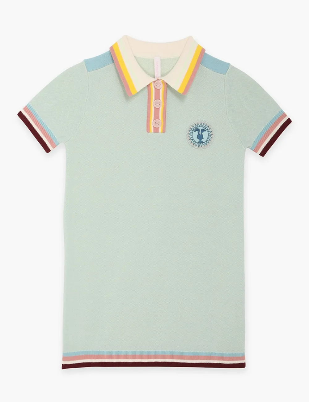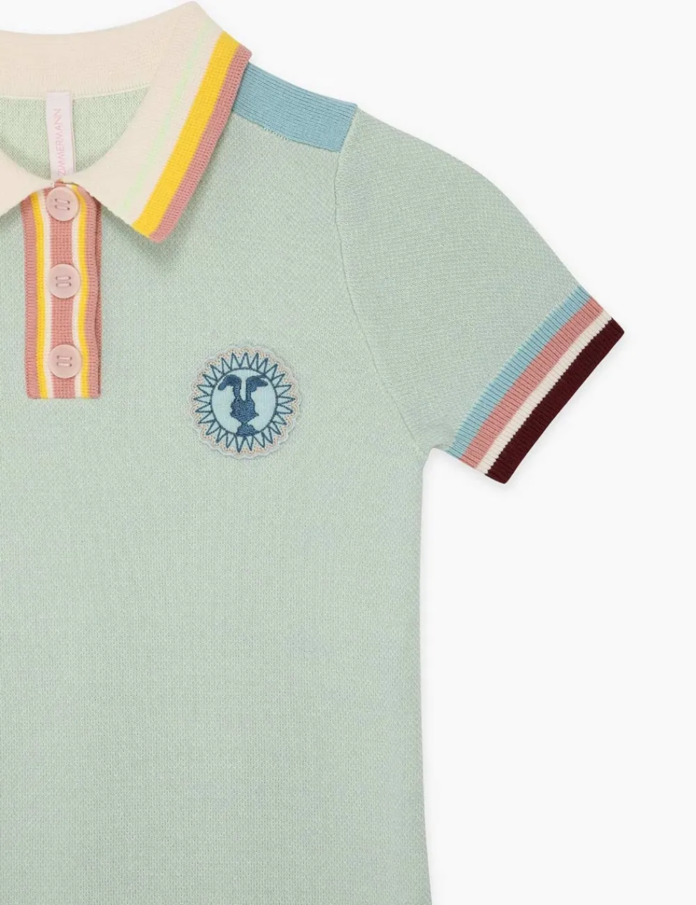 The Devi Jacquard Knit Tunic In Multi From Our Summer Swim 2023 Collection. A Tunic Knit Dress Featuring A Classic Collar With Buttons And A Zimmermann Motif.