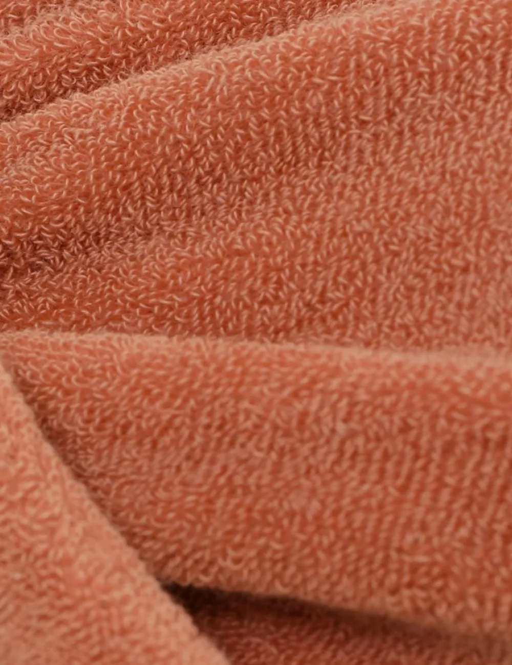 The Devi Terry Tie Bikini In Dusty Pink From Our Summer Swim 2023 Collection. A Cotton Terry Bandeau Bikini Featuring A Self Tie At Centre Front And Low Rise Pants With Self Ties At The Hips.