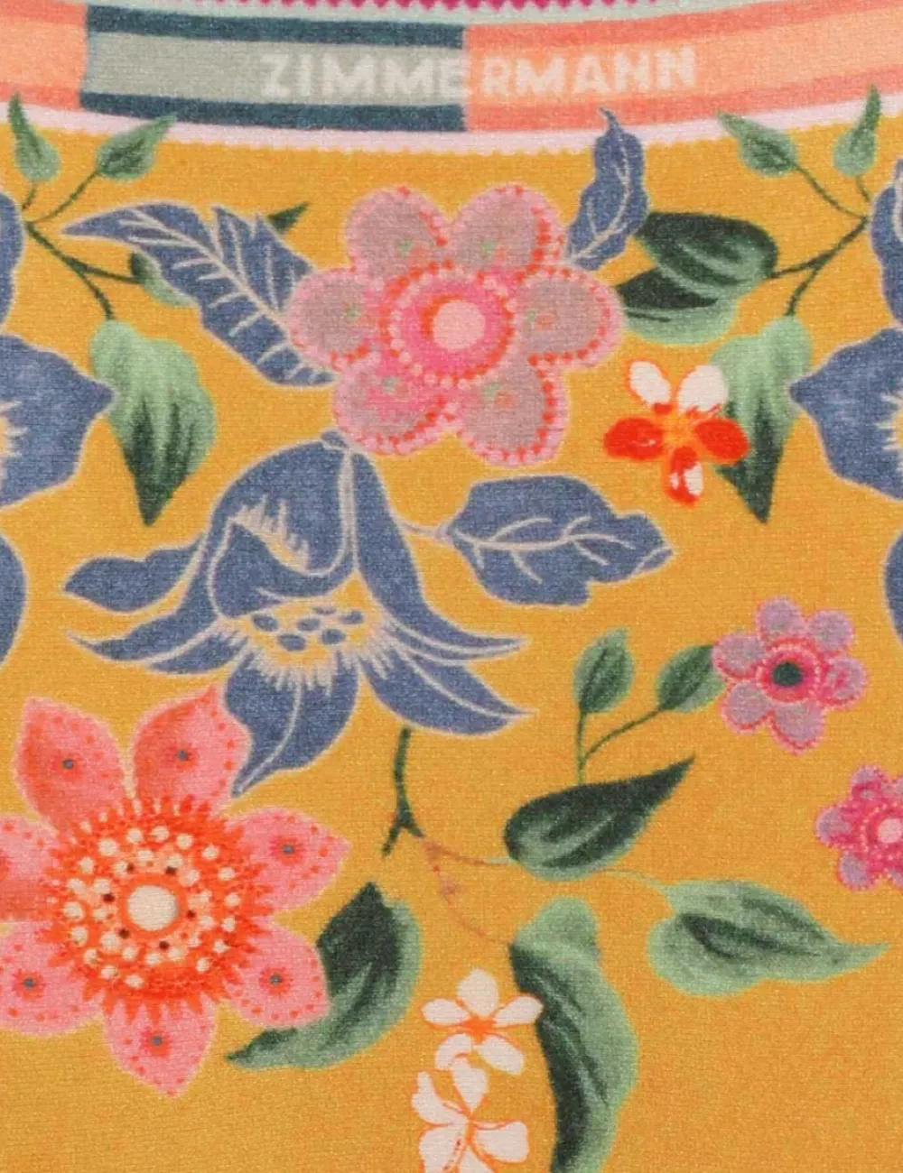 The Ginger Scarf Tie Pant In Mustard Multi From Our Summer Swim 2023 Collection.A Low Rise Bikini Pant Constructed From Italian Lycra, Featuring Tie Details At The Side Waist.