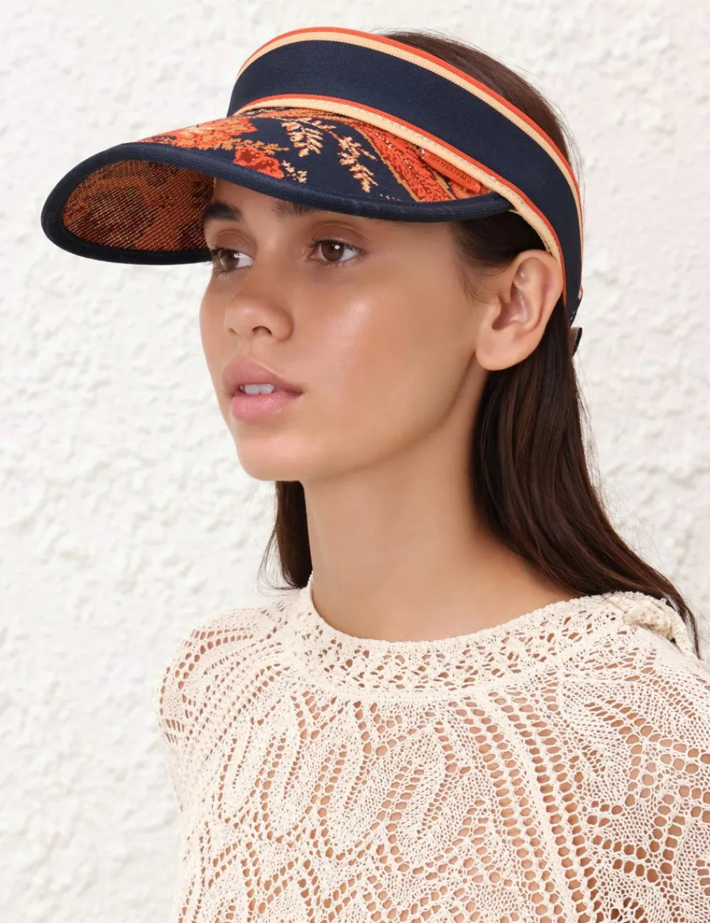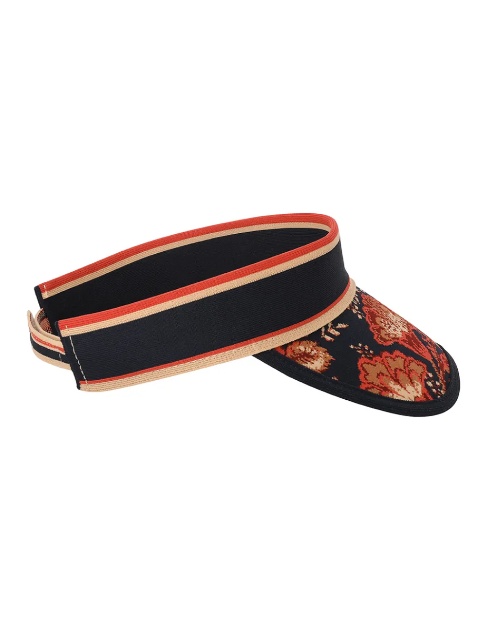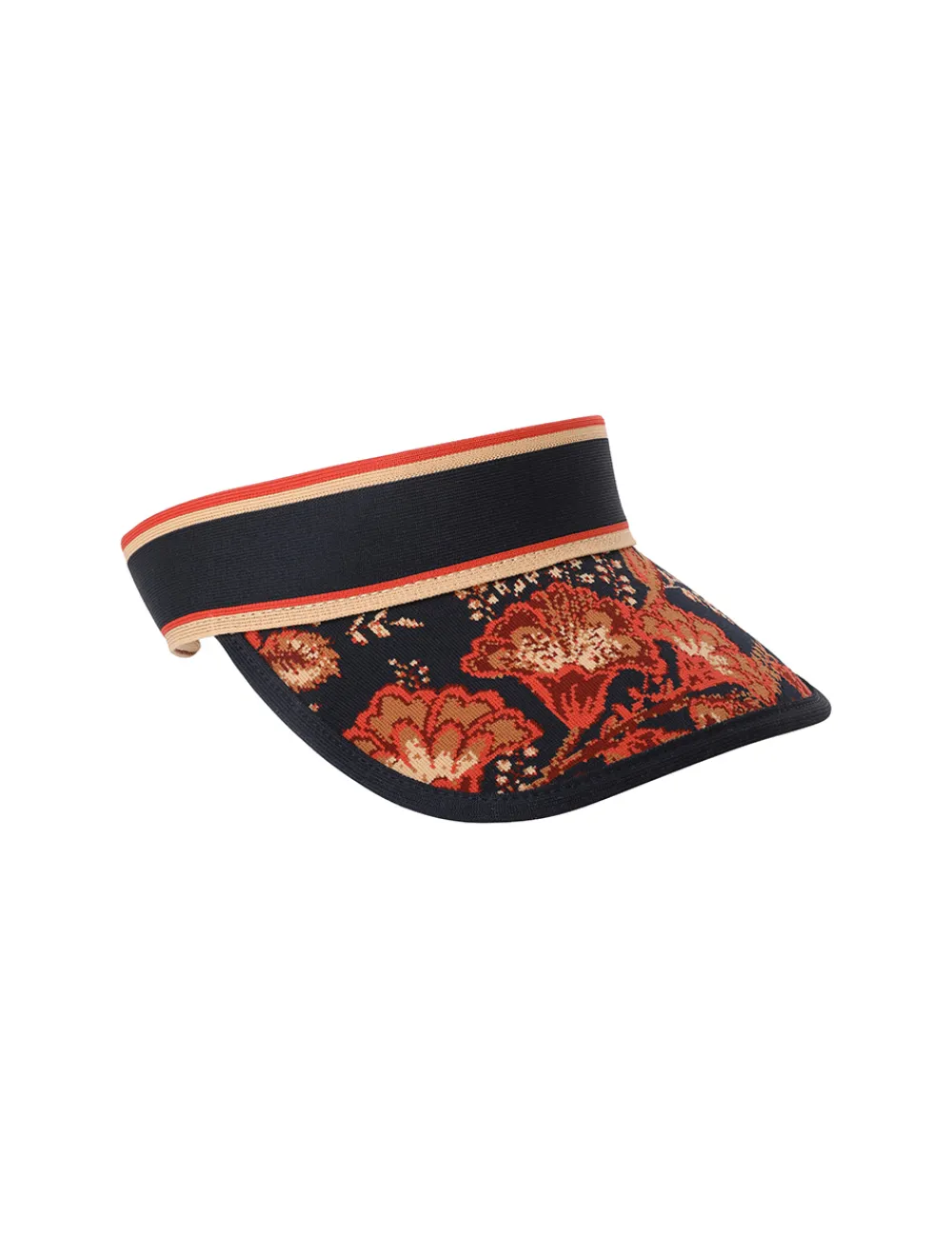 The Jacquard Visor In Dark Navy Floral From Our Resort 2024 Collection, Matchmaker.A Cotton Jacquard Visor With A Velcro Strap.