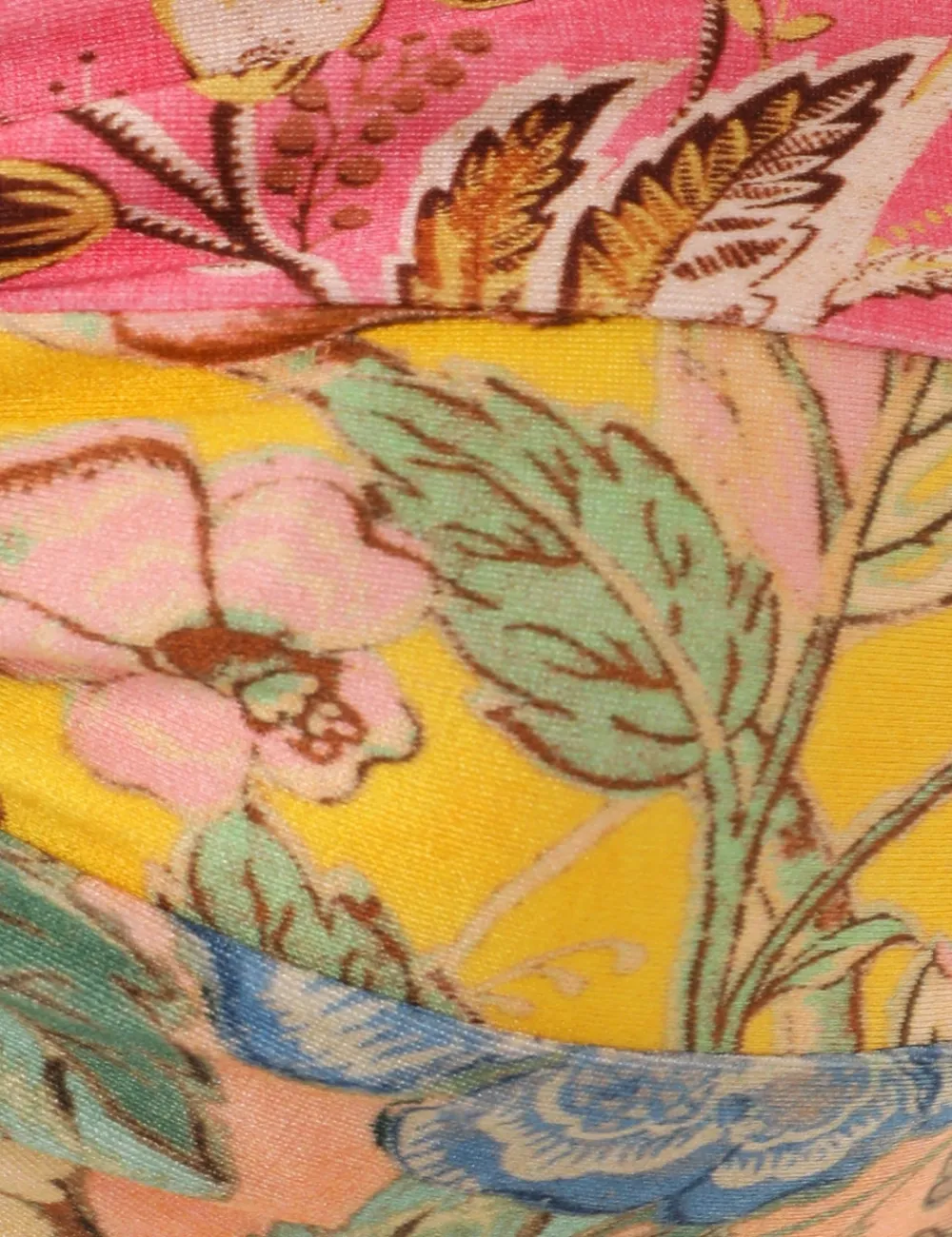 The Junie Panelled Halter Bikini In Spliced From Our Resort Swim 2024 Collection. A Shiny Lycra Bikini Set Featuring A Halter Style Bra And A Ruched Pant With Ties With Toggles Ends.