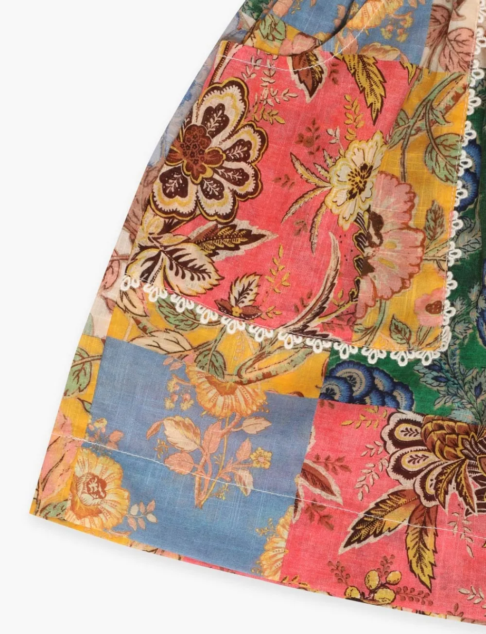 The Junie Skirt In Patch Floral From Our Resort Swim 2024 Collection. A Kids Cotton Skirt Featuring An Elasticated Waistband And A Waist Tie.