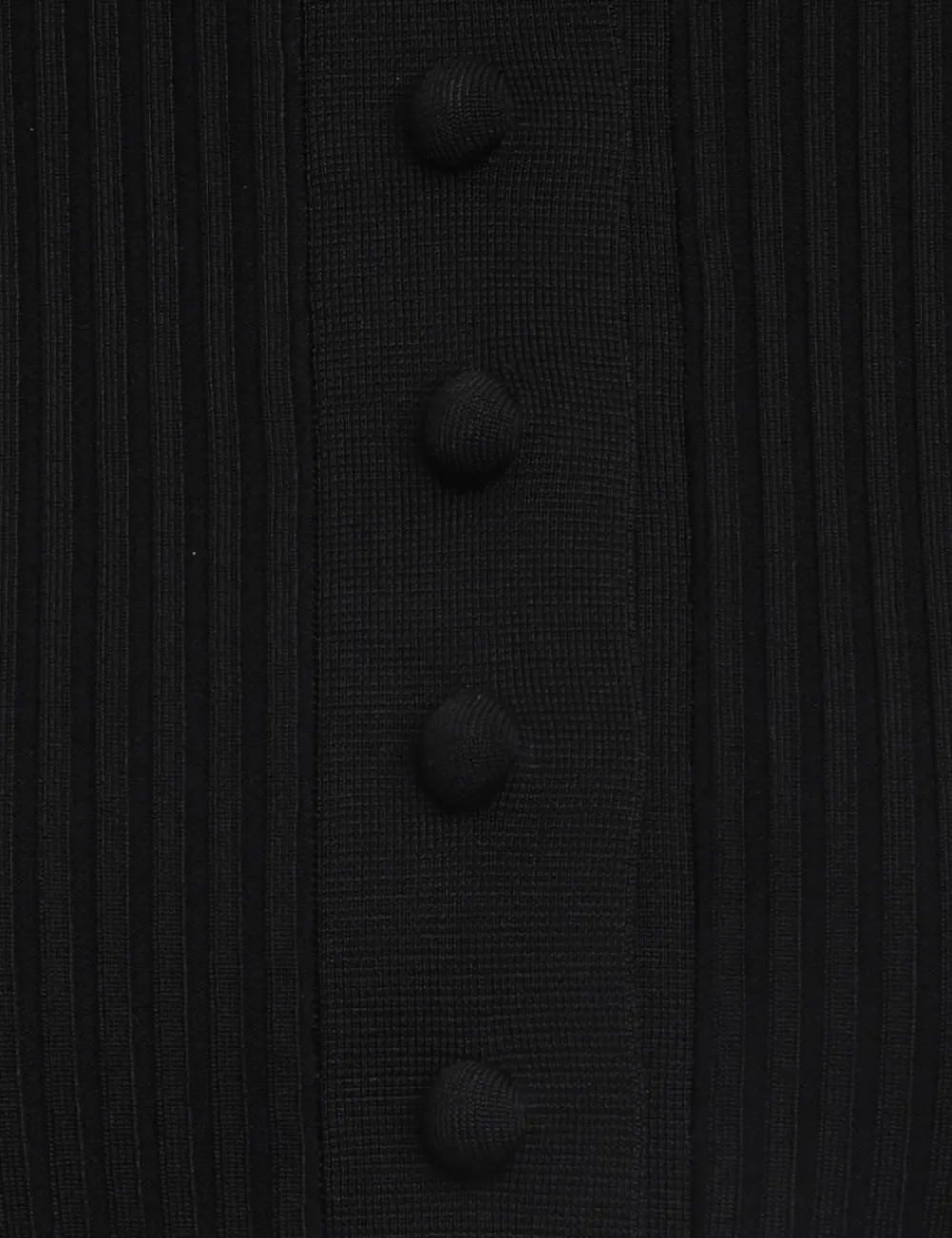 The Knit Polo Top In Black From Our Fall 2023 Collection, Luminosity. A Long Sleeve Knit Polo Featuring A Three Button Closure.