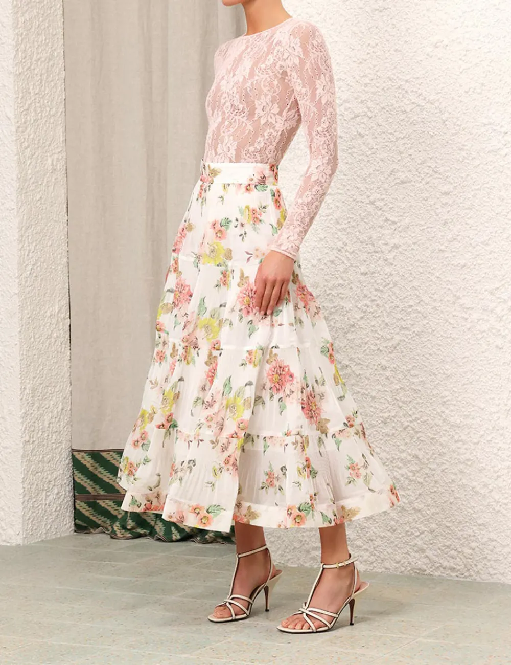 The Lace Bodysuit In Blush From Our Resort 2024 Collection, Matchmaker. A Lace Bodysuit Featuring A Crew Neck And Long Sleeves.