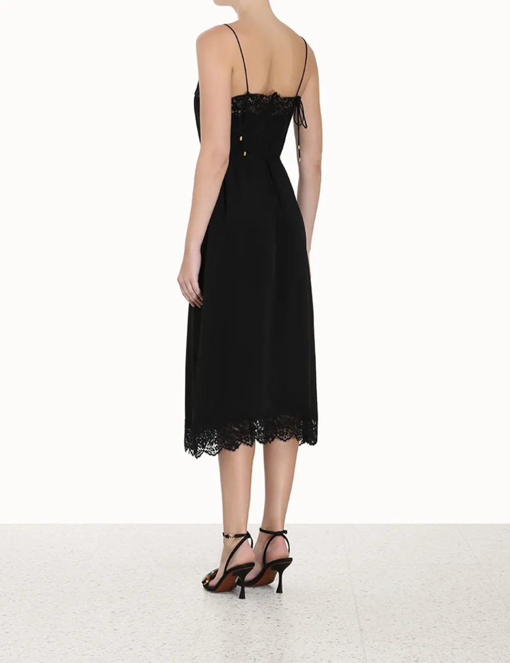 The Lace Panel Slip Midi In Black From Our Fall 2023 Collection, Luminosity. A Slip Midi Dress Constructed From Lace Panels.