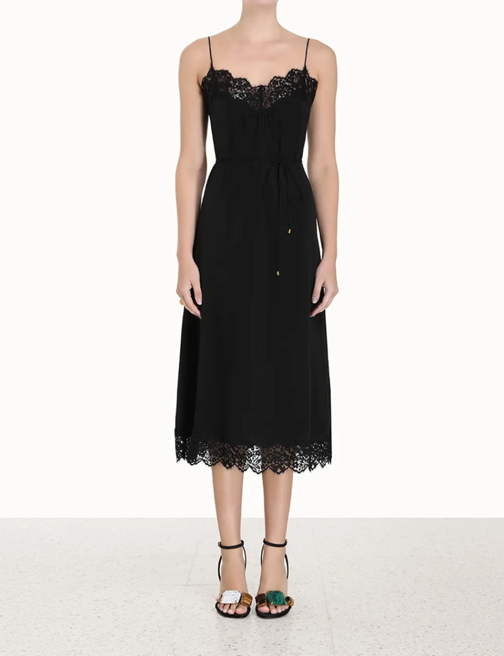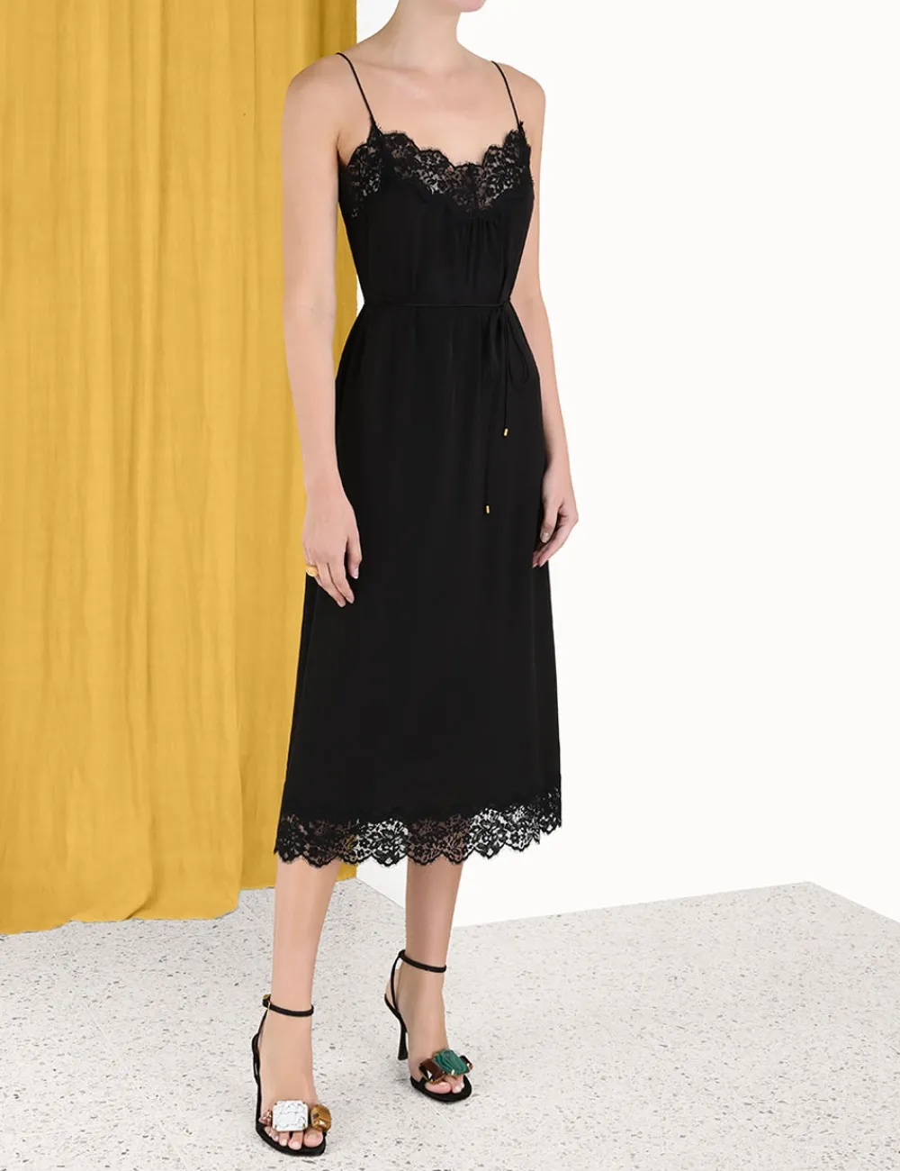The Lace Panel Slip Midi In Black From Our Fall 2023 Collection, Luminosity. A Slip Midi Dress Constructed From Lace Panels.