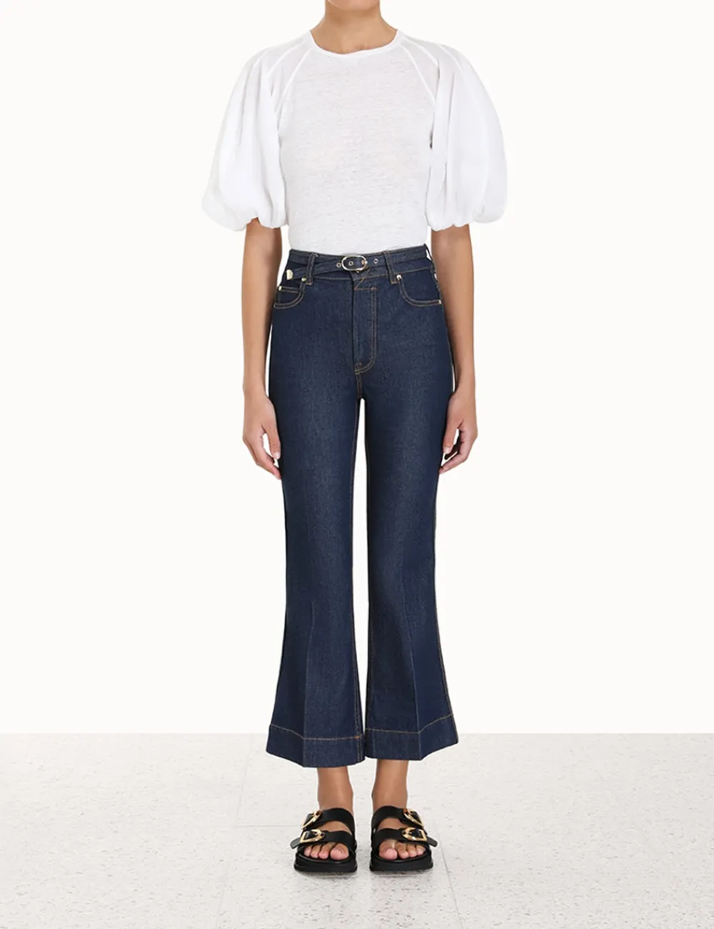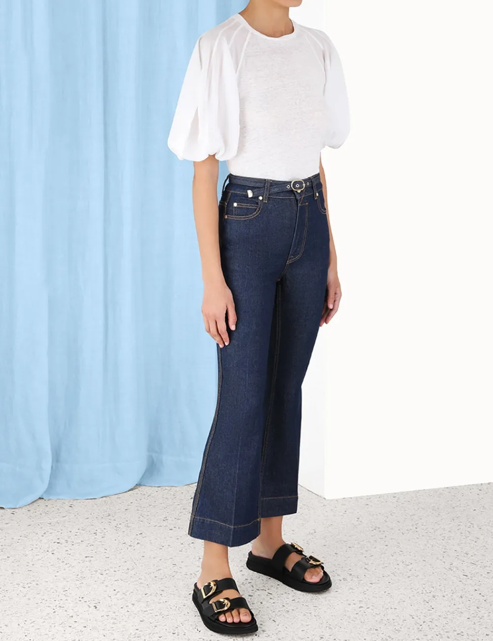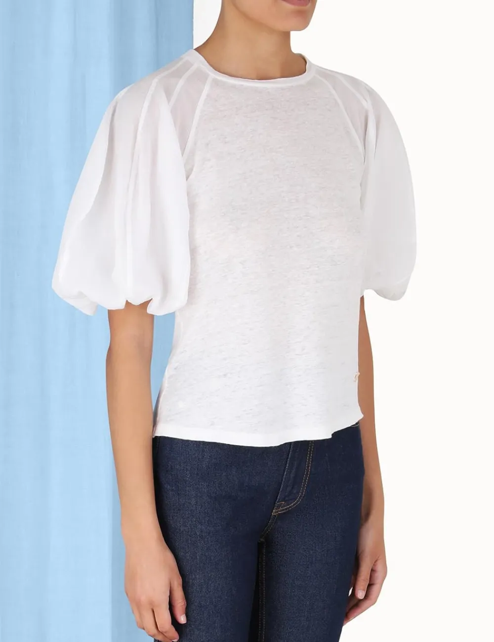 The Lantern Sleeve Tee In Ivory From Our Fall 2023 Collection, Luminosity. A Linen Tee Featuring Short Blouson Sleeves.