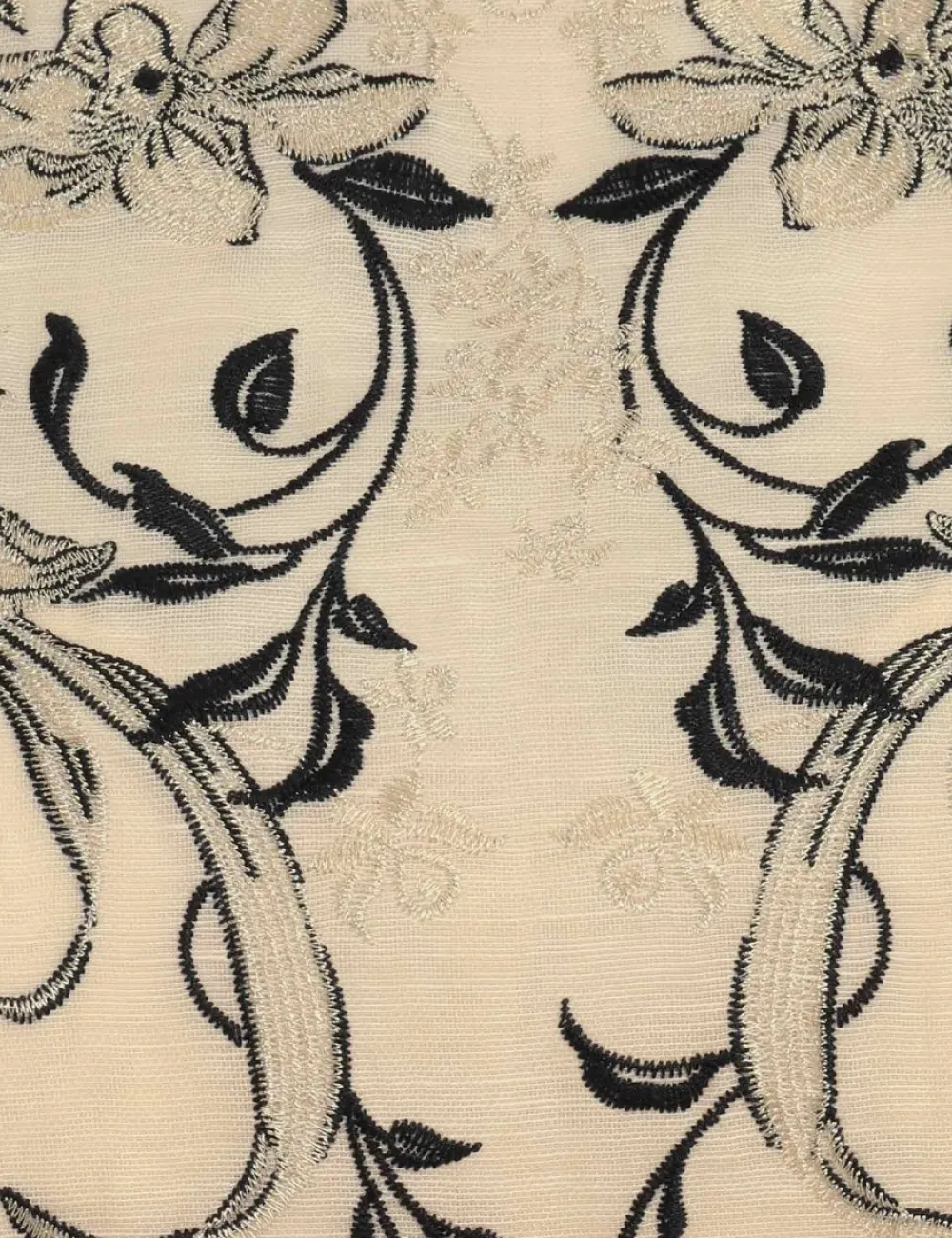 The Lyrical Embroidery Mini Dress In Book Cover Gold/Cream From Our Fall 2023 Collection, Luminosity. A Silk Linen Mini Dress Featuring A Full Asymmetric Skirt And Contrast Embroidery Throughout.
