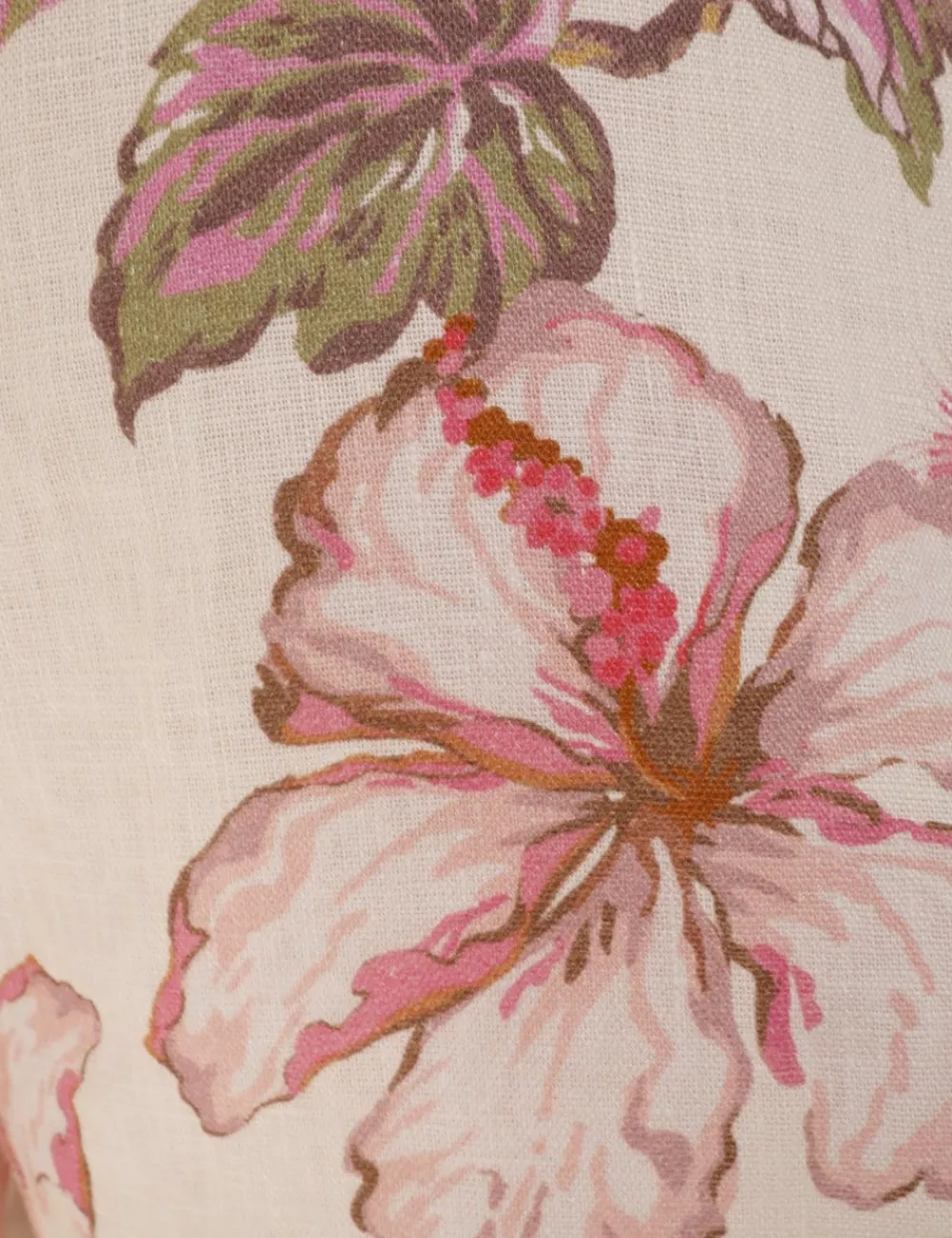 The Matchmaker Tuck Short In Coral Hibiscus From Our Resort 2024 Collection, Matchmaker. A High Waisted Linen Short Featuring Side Seam Pockets And A Self Cover Buckle Belt.