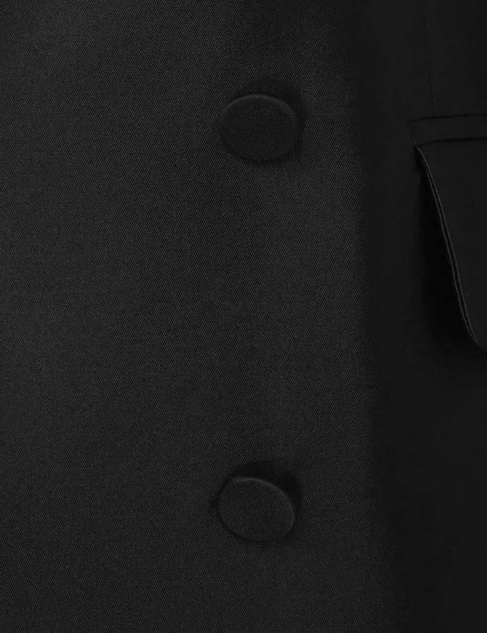 The Matchmaker Tuxedo Dress In Black From Our Resort 2024 Collection, Matchmaker. A Wool And Silk Blend Mini Dress Featuring An Eight-Button, Double Breasted Closure.