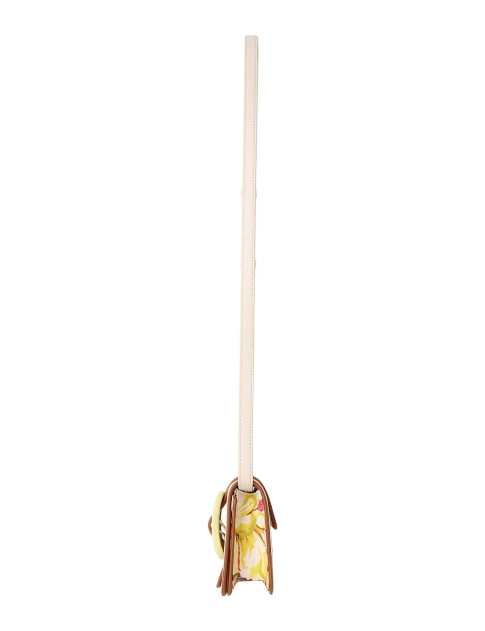 The Printed Small Cross Body Bag In Yellow Hibiscus From Our Resort 2024 Collection, Matchmaker. A Small Linen Cross Body Bag Featuring A Buckle Front Design And An Internal Card Pocket.