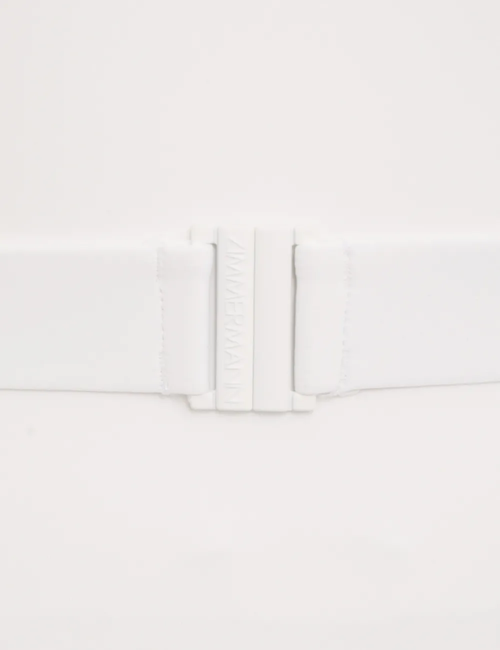 The Separates Rib Belted 1Pc In Ivory From Our Summer Swim 2023 Collection. A Strapless One Piece Constructed From Ribbed Italian Lycra Featuring An Elastic Belt With A Zimmermann Branded Clasp.