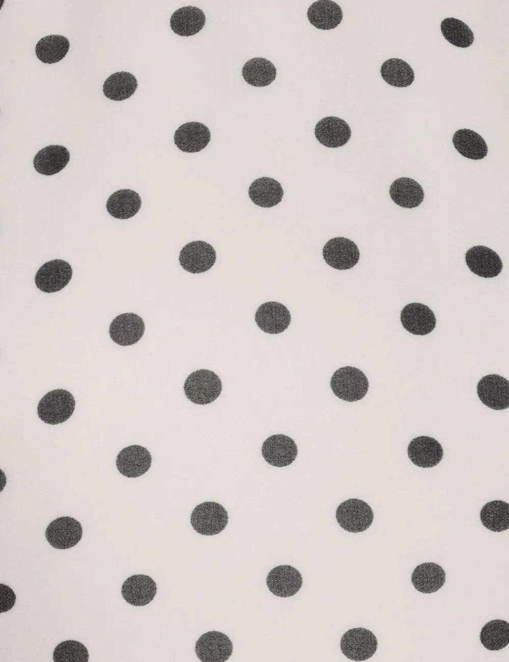 The Sunray Picnic Dress In Cream/Black Dot From Our Fall 2023 Collection, Luminosity. A High Neck Midi Dress With A Pleated Skirt And Belted Waist.