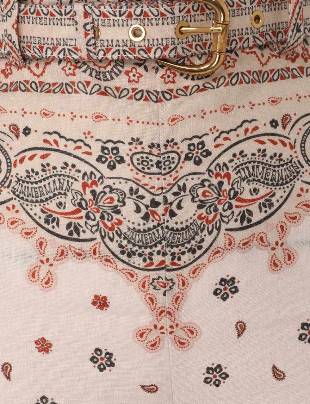 The Wide Leg Pant In Cream Bandana From Our Resort 2024 Collection, Matchmaker. A Linen Pant Featuring A High Waisted, Flare Silhouette, Finished With A Self Cover Belt.